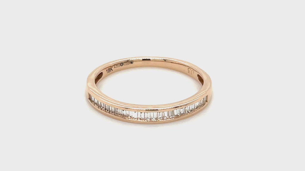 Anillo de media eternidad con canal de talla baguette y diamantes, 0,25 ct, oro rosa de 18 quilates