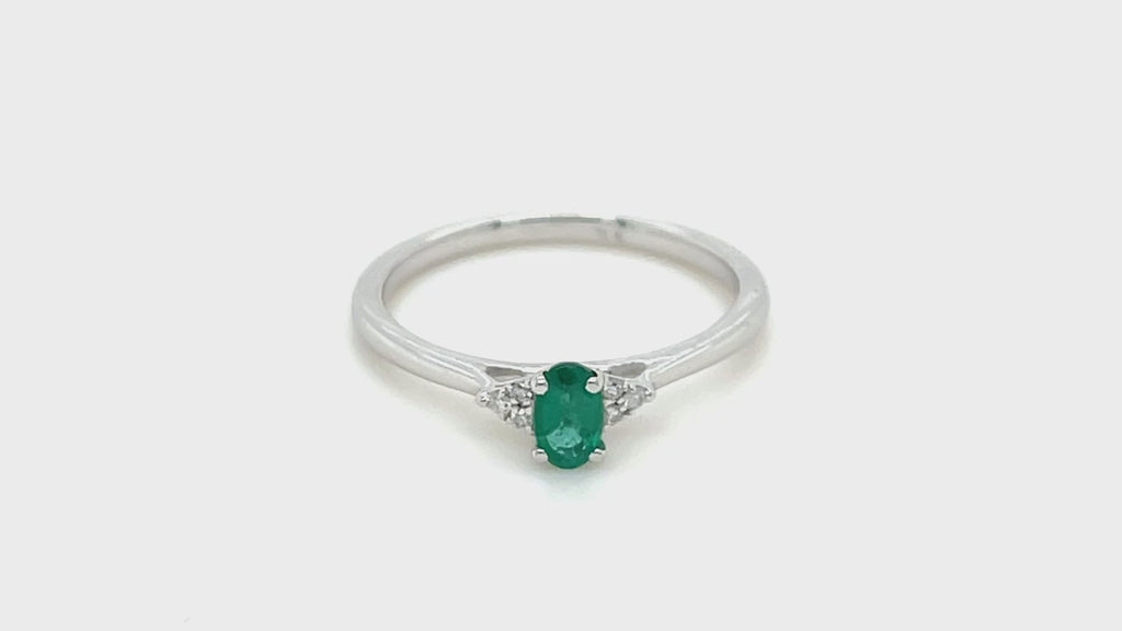 Esmeralda 0.50ct Diamante 0.06ct Anillo Tres Piedras Oro Blanco 9k