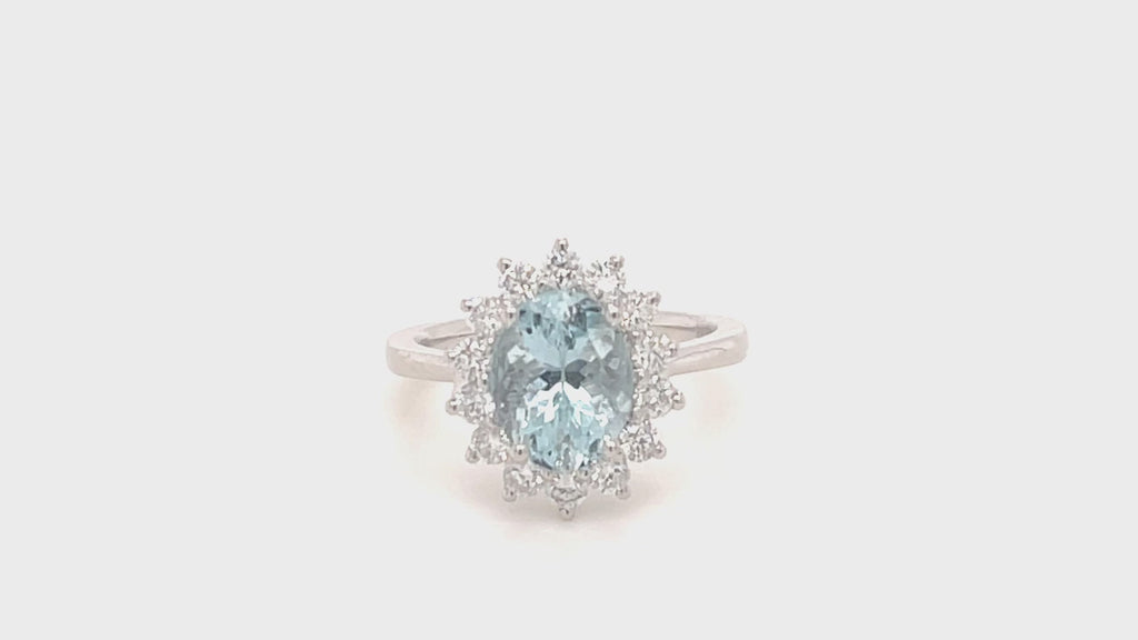 Aquamarine 1.79ct and Diamond 0.54ct Cluster Ring in 18K White Gold - All Diamond