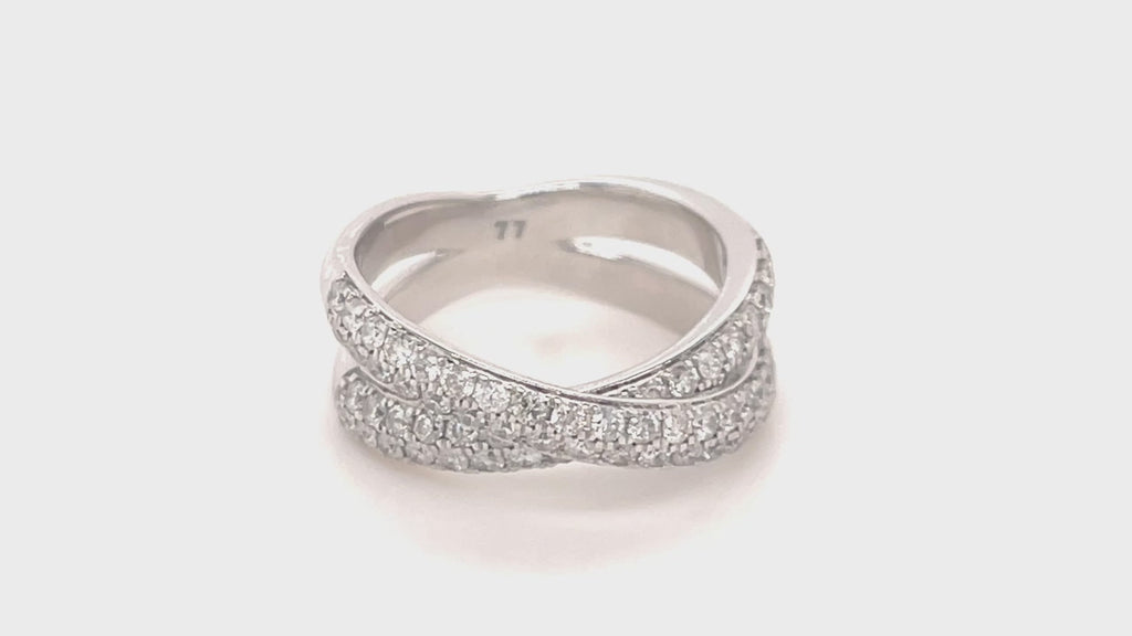 Pave Diamond Half Eternity Crossover Ring 1.00ct G/SI 18k White Gold - All Diamond