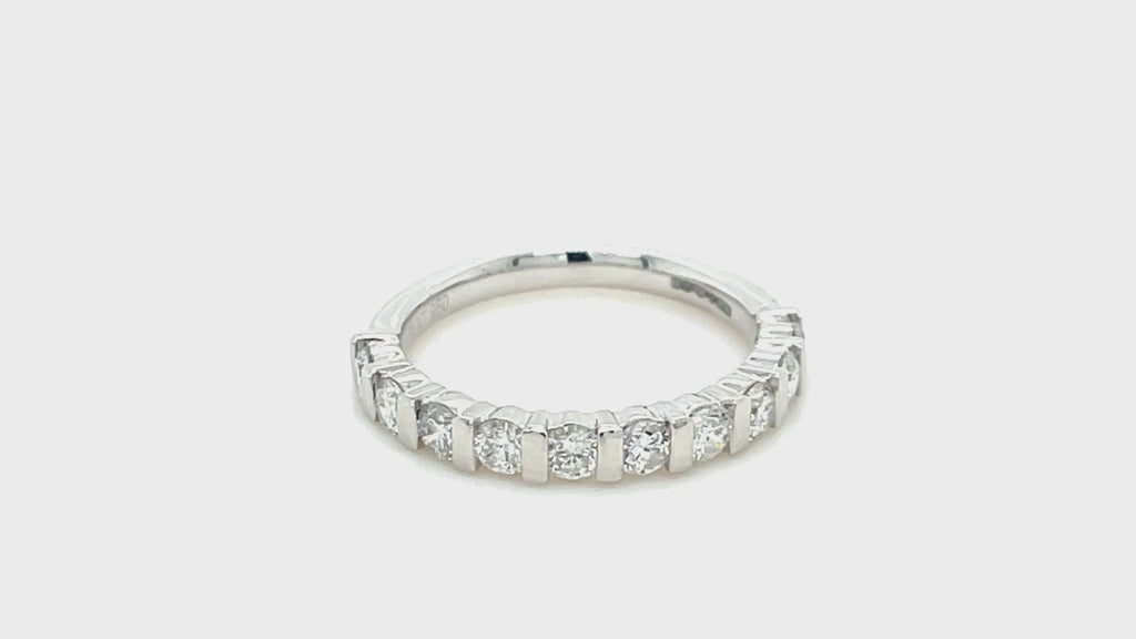 Bar Set Diamond Half Eternity Ring 0.75ct G/SI Diamonds 18k White Gold - All Diamond
