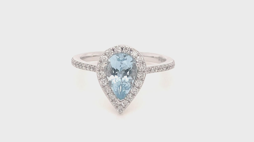 Halo Pear Aquamarine 0.57ct and Diamond 0.34ct Ring in Platinum - All Diamond