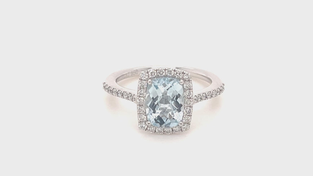 Cushion Halo Aquamarine 2.33ct & Diamond 0.53ct Ring in 18K White Gold - All Diamond
