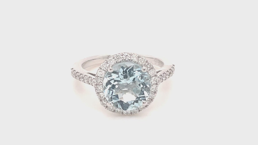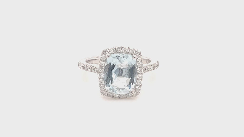 Halo Aquamarine 2.39ct and Diamond 0.43ct Ring in 18K White Gold - All Diamond