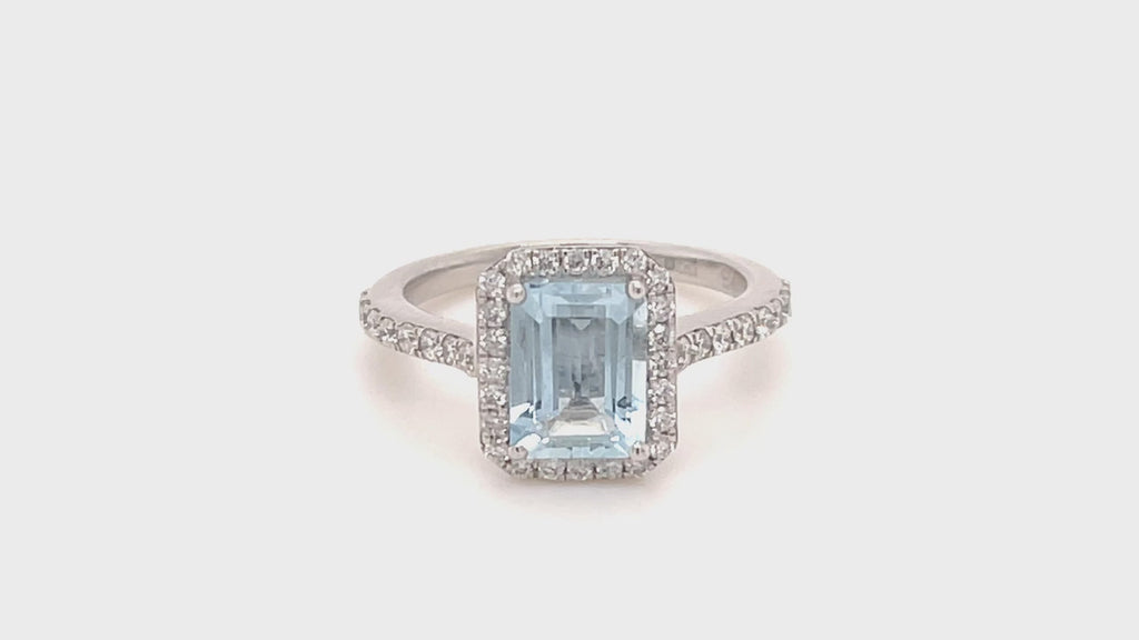 Halo Aquamarine 2.39ct and Diamond 0.43ct Ring in Platinum - All Diamond