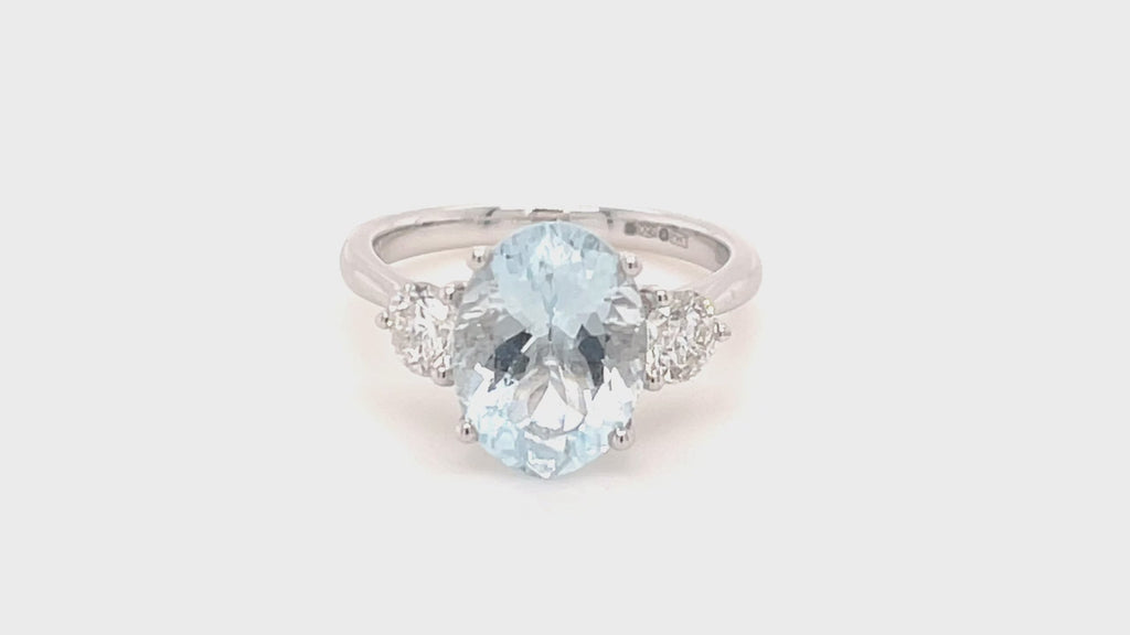 Three Stone Aquamarine 3.59ct & Diamond 0.68ct Ring in Platinum - All Diamond