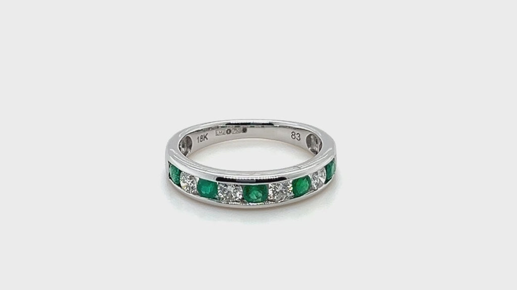 Channel Emerald & Diamond Half Eternity Ring 0.50ct 18k White Gold - All Diamond