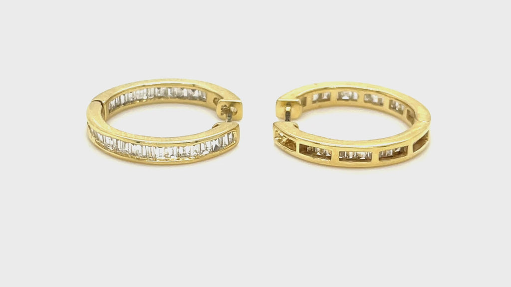 Channel Set Baguette Diamond Hoop Earrings 1.00ct G/SI 18k Yellow Gold - All Diamond