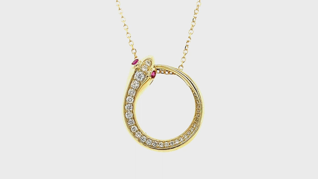 Diamond and Ruby Snake Pendant Necklace 0.30ct in 9k Yellow Gold
