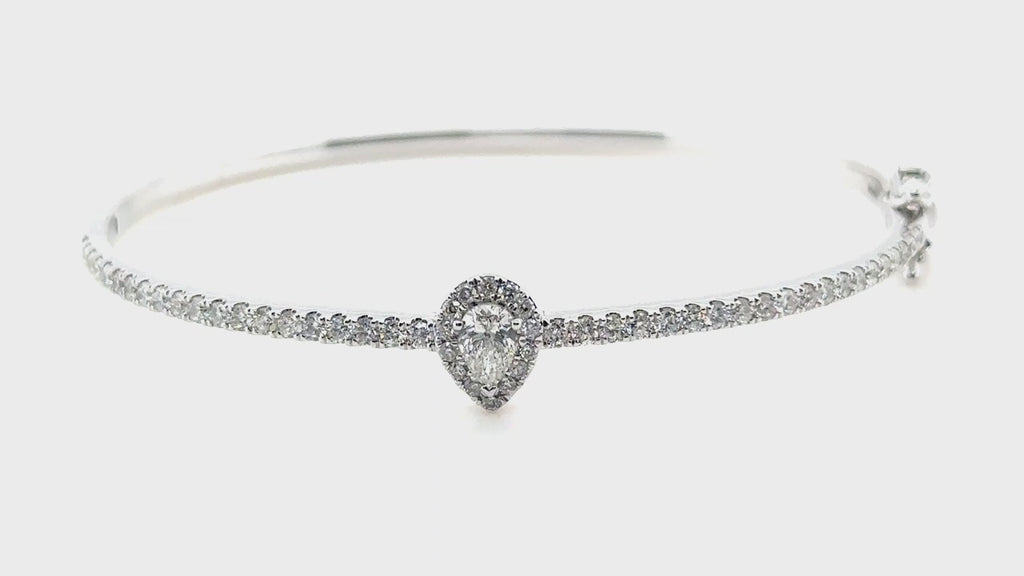 Diamond Halo Pear Bangle 1.55ct G/SI Quality Diamonds in 18k White Gold