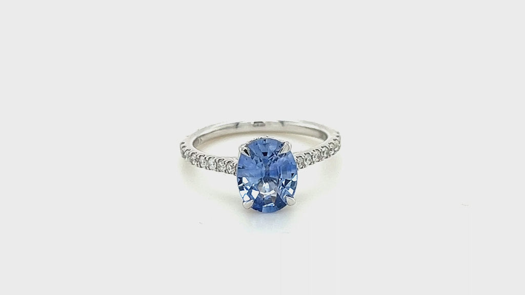 Oval Blue Sapphire and Diamond Engagement Ring 2.30ct 18k White Gold