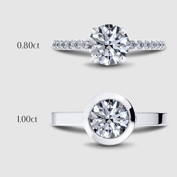 Diamonds that need a thick setting will tend to look smaller than those that can use a more delicate or slender setting type. You can buy a slightly smaller diamond for a delicate setting than for a thicker setting and the two will look similar with a good saving.