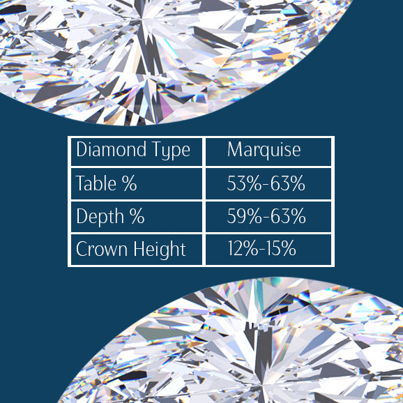 So that your marquise cut diamond looks as magnificent as possible, the proportions need to be right. The following table shows a range of acceptable ratios.