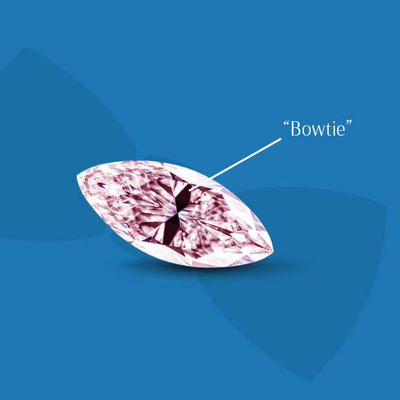 - Marquise cut diamonds can have an effect called bowtie. Bowtie is where the facets of the diamond were not cut in perfect alignment. The result of misalignment is that across the width of the diamond, there is a visibly darker area that looks like a bow tie. The bowtie is due to light leaking from the misaligned facets. If the effect is not severe, then it is not an issue, it can even be a feature of the ring. If the bowtie attracts attention when looking at the diamond, then the stone should be rejected.