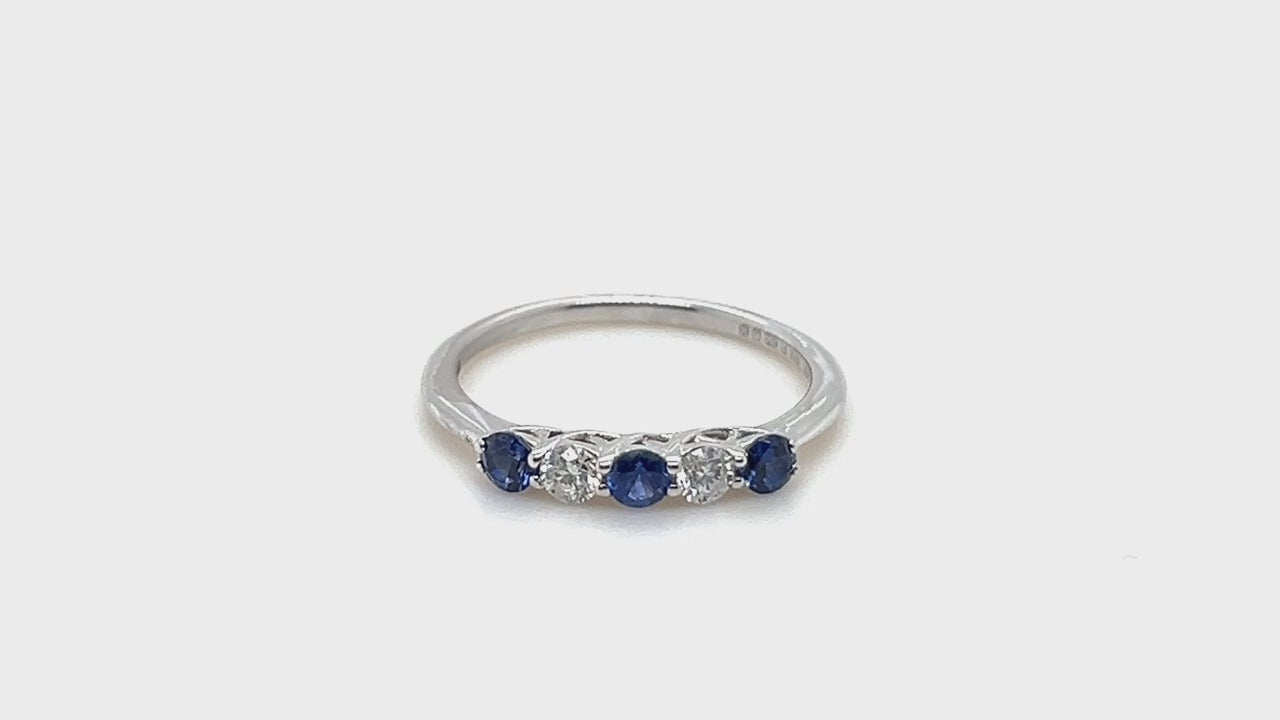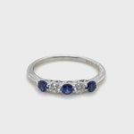0.35ct Blue Sapphire 0.20ct Diamond Five Stone Ring 18k White Gold