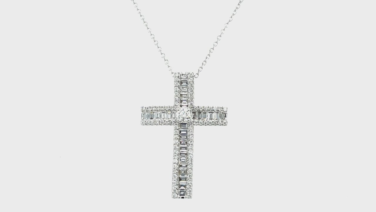 1.10ct Baguette & Round Diamond Cross in 18k White Gold