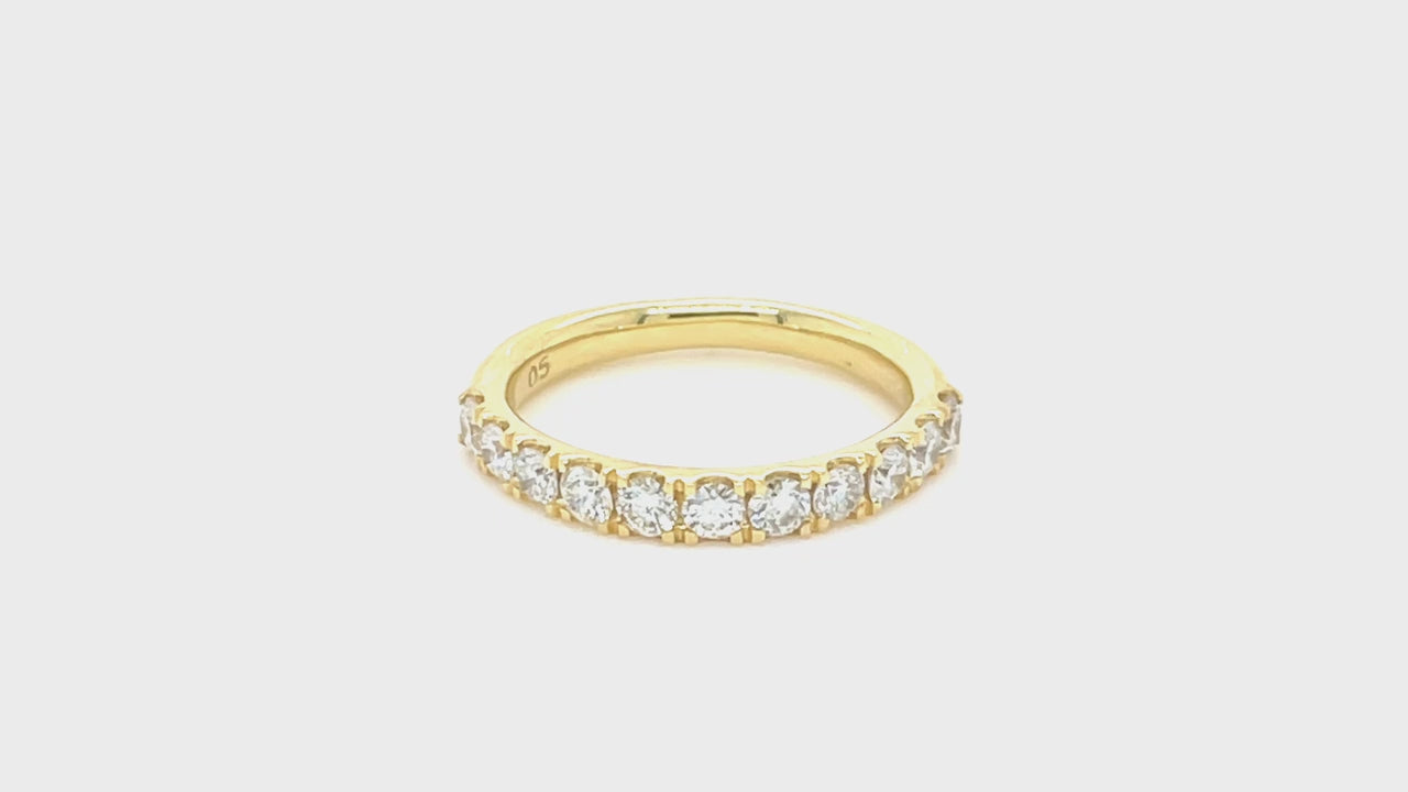 The timeless appearance of this ring is sure to appeal to a wide range of customers. The handsome yellow gold looks great with a variety of outfits. The simple yet elegant design is sure to stand out in a crowd. A beautiful look that's sure to make a lasting impression. This half eternity ring is an elegant addition to any jewellery collection.