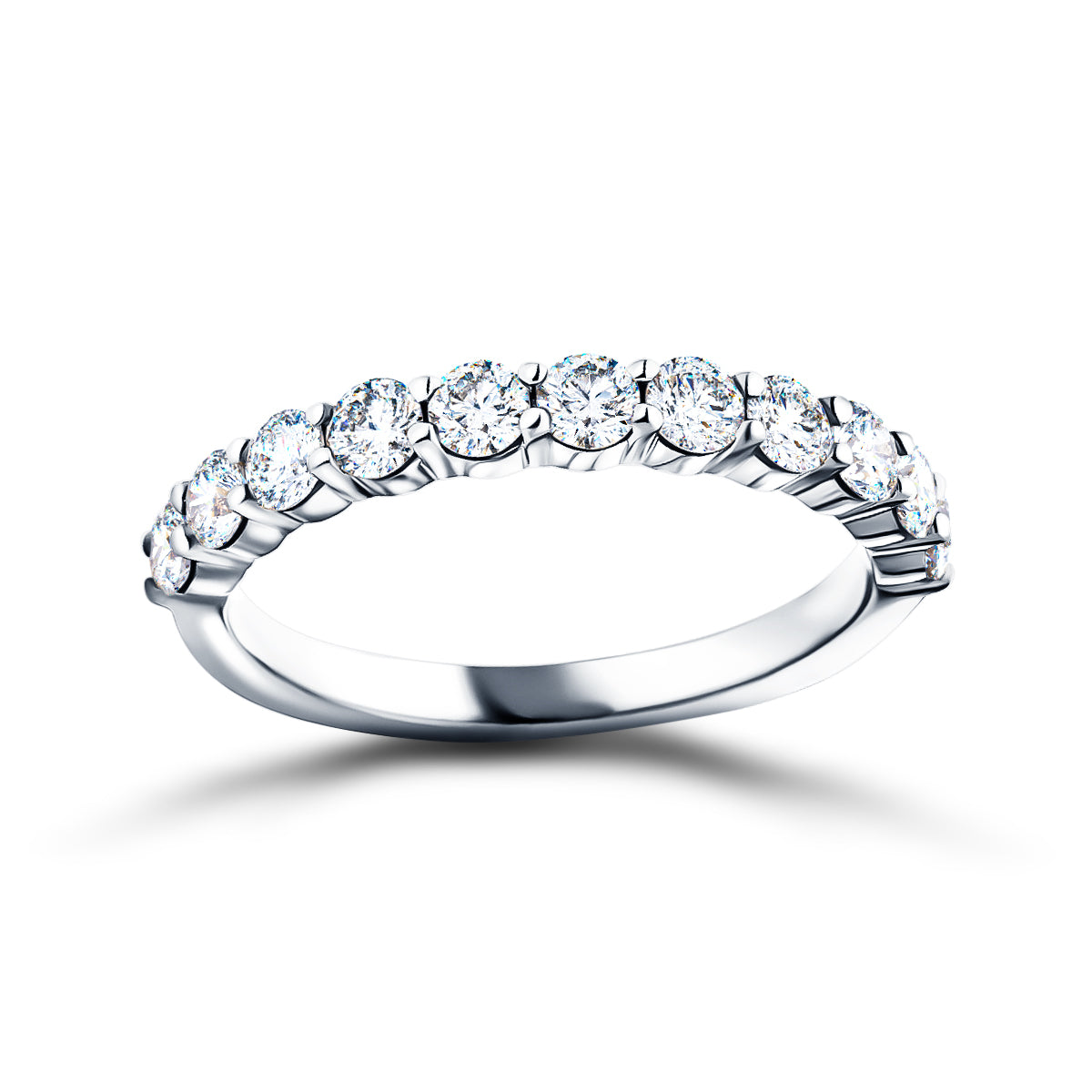 This stunning half eternity ring is carefully handmade by our British craftsmen. The ring features 2.20ct of conflict-free, G/SI quality, diamonds. Each diamond hand-cut into seven gemstones which are firmly secured in the middle of a fine British hallmarked platinum band to give off a superlative sparkle. This gorgeous piece will look elegant on the finger when worn and is sure to be cherished for a lifetime.