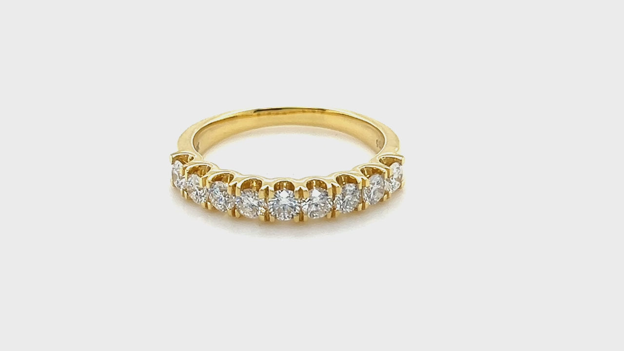 9 Stone Half Eternity Ring 1.00ct G/SI Diamonds in 18k Yellow Gold 3.5mm
