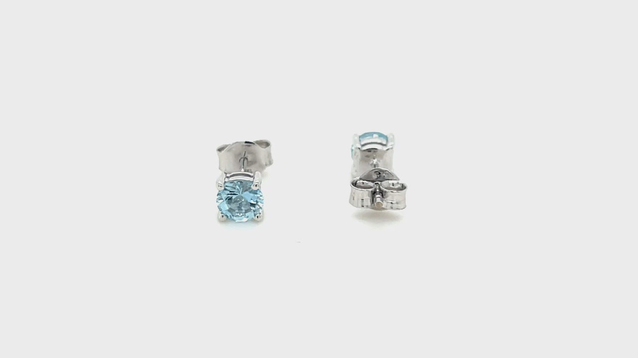 Aquamarine Solitaire Earrings 0.80ct in 9k White Gold 5.0mm