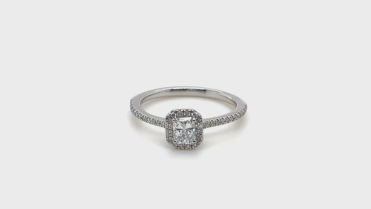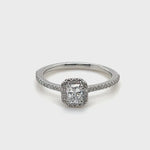 Certified Diamond Halo Cushion Engagement Ring 0.50ct 18k White Gold