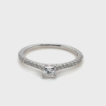 This elegant princess-cut diamond engagement ring features 0.55 carats of sparkling G/SI quality diamonds, set in a sophisticated four-prong setting. The pure platinum band is accented with additional diamonds, adding a touch of luxury to the overall design. Each ring is UK handcrafted, hallmarked, and comes with a lifetime guarantee of workmanship and an independent diamond grading certificate.