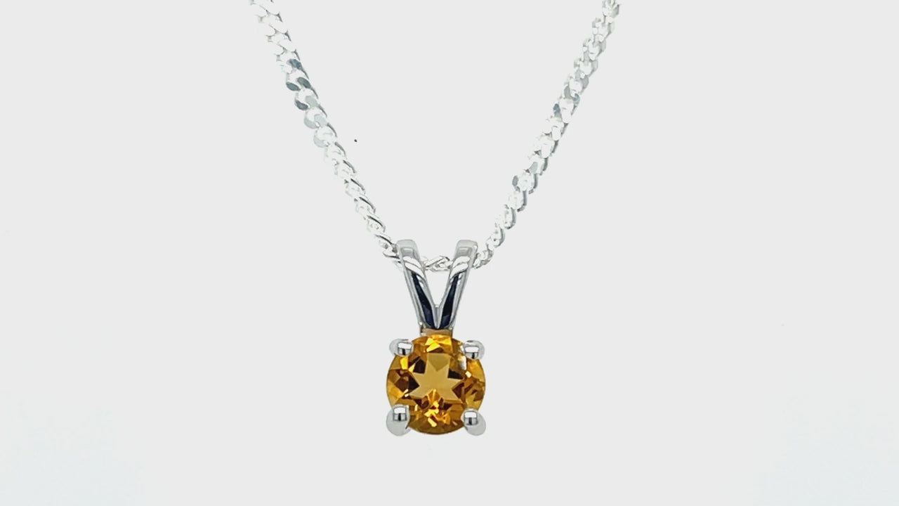 Citrine Solitaire Necklace Pendant 0.40ct in 9k White Gold 5.0mm