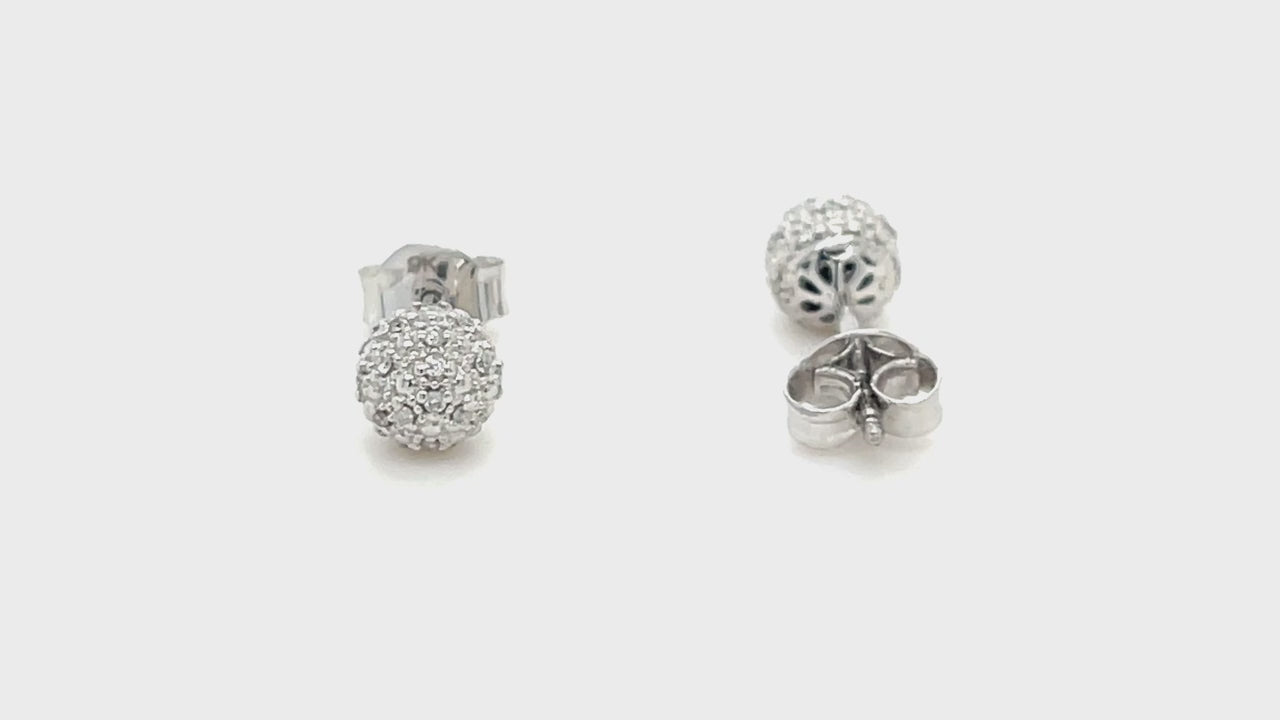 Diamond 0.13ct G/SI Pave Ball Stud Earrings in 9k White Gold 6mm