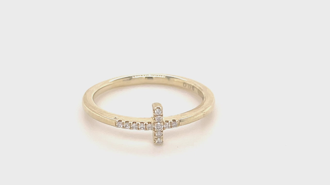 This dazzling diamond cross ring is a perfect piece of jewellery for the woman who loves quality. This ring will leave a lasting impression, as the 0.06ct of G/SI grade diamonds are set in 9k yellow gold. This ring is handcrafted in high-quality materials, and its design will make it an indispensable part of your jewellery collection. This ring will leave your hands sparkling and will guarantee attention and admiration. This ring will make you feel happy and comfortable and bring you joy.