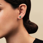 What better way to add sparkle and shine to your outfit than by adorning yourself with these diamond and emerald studded earrings? Handcrafted in 9k White Gold, the earrings are adorned with a total of 1.08 carats of round emeralds and 0.22 carat total weight of diamonds in a halo around the brilliant green emeralds. The diamonds are of G/SI quality, adding elegance and magnificence to the piece. Pair it up with your favourite formal attire or go casual for weekend partying!