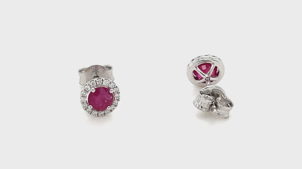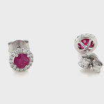 Diamond Halo Ruby Earrings 1.15ct Set in 9k White Gold