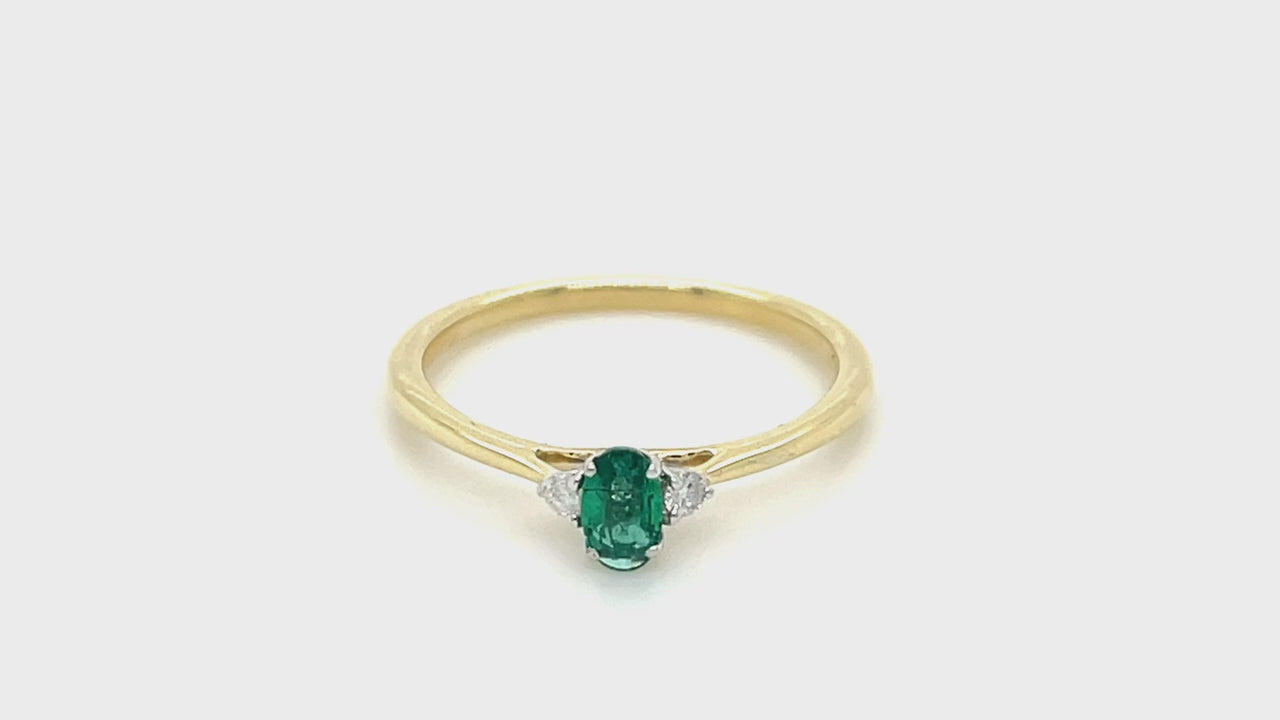 Emerald 0.20ct Diamond 0.05ct Three Stone Ring 9k Yellow Gold