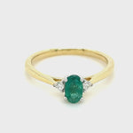 Emerald 0.50ct Diamond 0.06ct Three Stone Ring 9k Yellow Gold - All Diamond