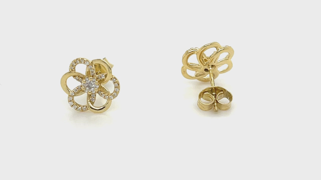 Flower Diamond Earrings 0.20ct G/SI Quality 18k Yellow Gold 10.2mm - All Diamond
