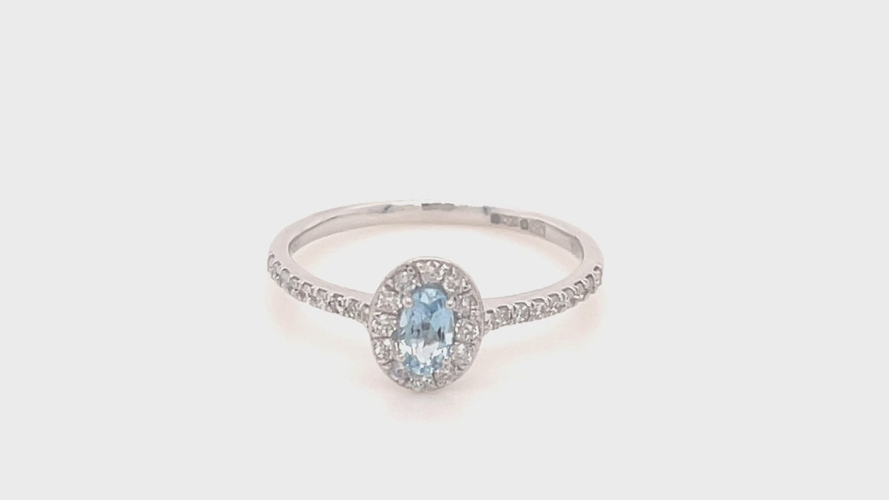 Halo Aquamarine 0.20ct and Diamond 0.22ct Ring in 18K White Gold