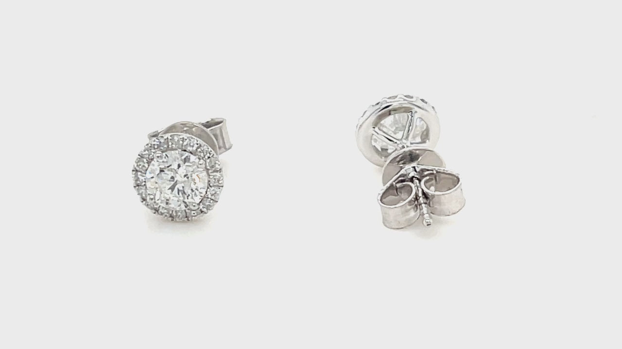 Halo Diamond Earrings 1.25ct Set in 18k White Gold 5.0mm