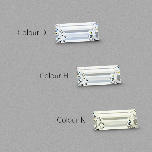 Careful matching between your baguettes and a central diamond is essential to ensure that the appearance of the finished jewellery is uniform across the whole piece. The centre stone doesn't need to be the same colour grade but, as a rule of thumb, stick within two colour and clarity grades.