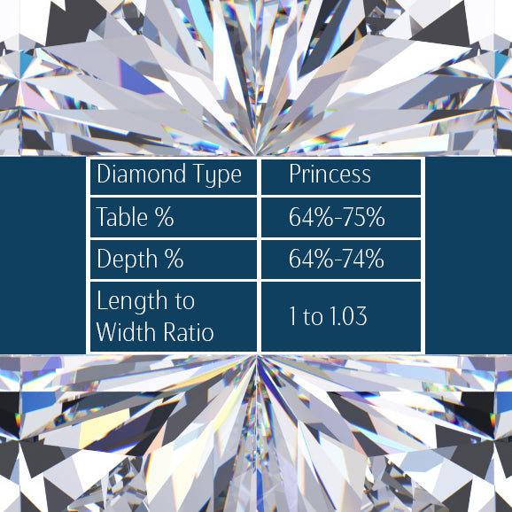 To maximise the brilliance of the diamond, there are recommended ratios for the table and depth of princess-cut stones.