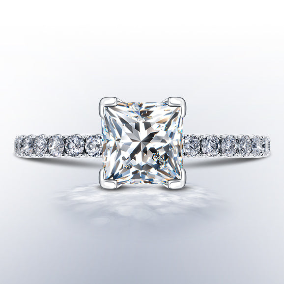 Princess cut diamonds are especially popular as the centre stone in engagement rings because it has almost the same brilliance as a round cut stone (the brightest of all diamond cuts) at a lower cost.