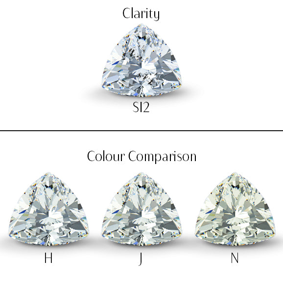Many fancy cut diamonds can be forgiving in terms of their polish and symmetry. Trillion cut diamonds need to have good polish and proportions to look their best. Look out for diamonds with a cut grade of Good or better.