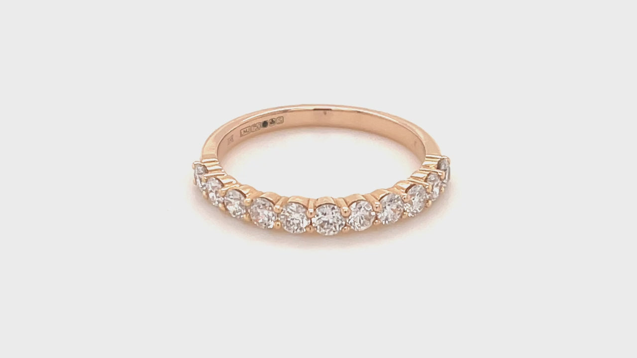 11 Stone Half Eternity Ring 0.75ct G/SI Diamonds in 18k Rose Gold 2.6mm - All Diamond