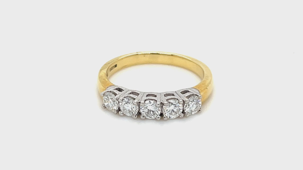 18k Yellow Gold 5 Stone Diamond Eternity Ring 0.80ct in G/SI Quality - All Diamond