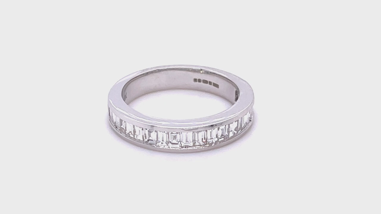 20 Baguette Diamonds Half Eternity Ring 0.75ct 18k White Gold 4.0mm - All Diamond