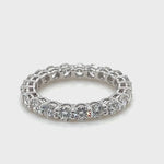 Nuestro deslumbrante y hermoso anillo de diamantes de eternidad completa es una pieza única y será un regalo perfecto para un ser querido en cualquier ocasión especial. Nuestro anillo de diseño británico está hecho a mano y tiene el sello del Reino Unido. Este anillo presenta una banda de oro blanco de 18k. Está engastado con 2,55 quilates de diamantes de calidad G/SI de origen ético que se cortan a mano en veintiuna piedras preciosas, cada una colocada cuidadosamente en un engaste de garra clásico alrededor de la banda. Este anillo de diamantes es un estilo atemporal que seguramente adornará su sentido de la moda.