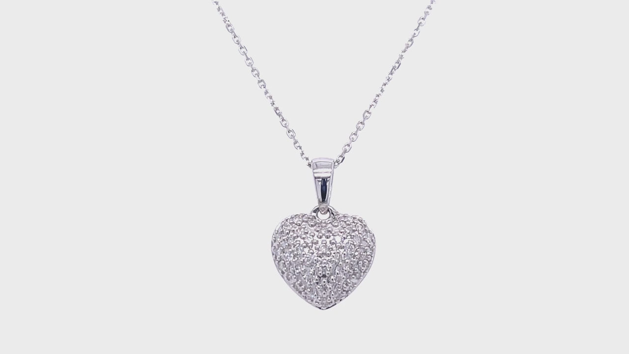 9K White Gold 0.20ct Diamond Heart Pendant - All Diamond