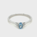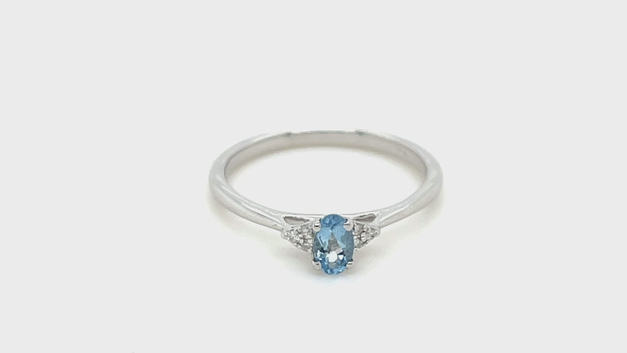 Este anillo con su aguamarina central y grupos de diamantes será una adición atemporal a su colección de joyas. La aguamarina ovalada está realzada con grupos de diamantes a ambos lados. La aguamarina genuina tiene un peso de 0,25 quilates, mientras que los grupos de diamantes tienen un peso total de 0,03 quilates y están elaborados con diamantes de calidad G/SI. Las joyas están engastadas en una reluciente banda de oro blanco de 9 quilates y están hechas a mano en el Reino Unido.