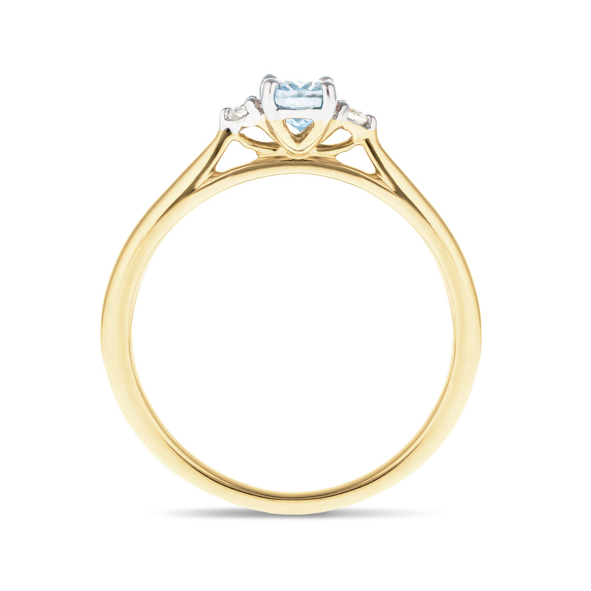 Aquamarine 0.50ct Diamond 0.06ct Three Stone Ring 9k Yellow Gold - All Diamond