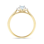 Aguamarina 0.50ct Diamante 0.06ct Anillo de tres piedras 9k Oro amarillo
