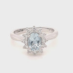 Aquamarine 0.65ct and Diamond 0.31ct Cluster Ring in 18K White Gold - All Diamond