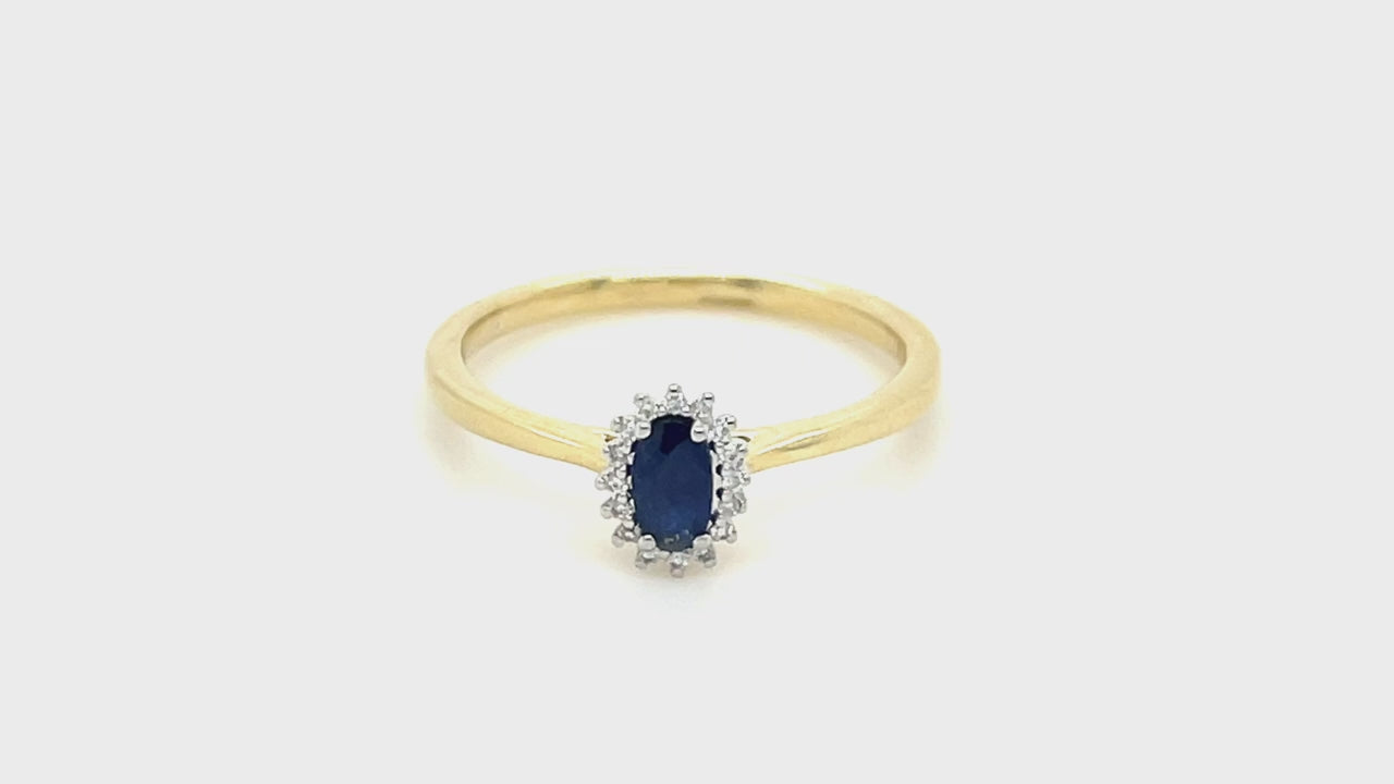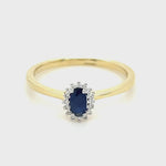 Blue Sapphire 0.20ct and Diamond 0.05ct Ring In 9k Yellow Gold - All Diamond